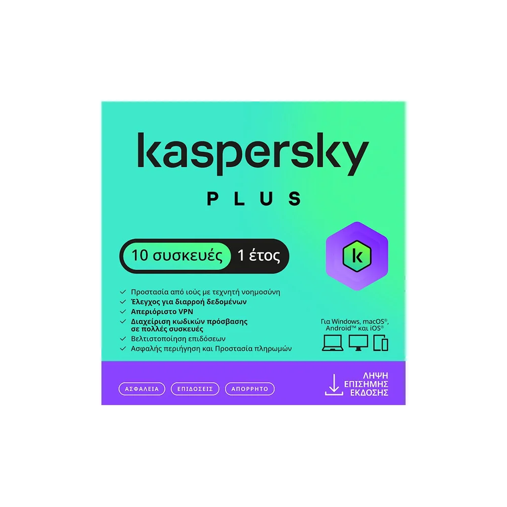 Kaspersky Plus 10 Συσκευές – 1 Έτος & Απεριόριστο VPN